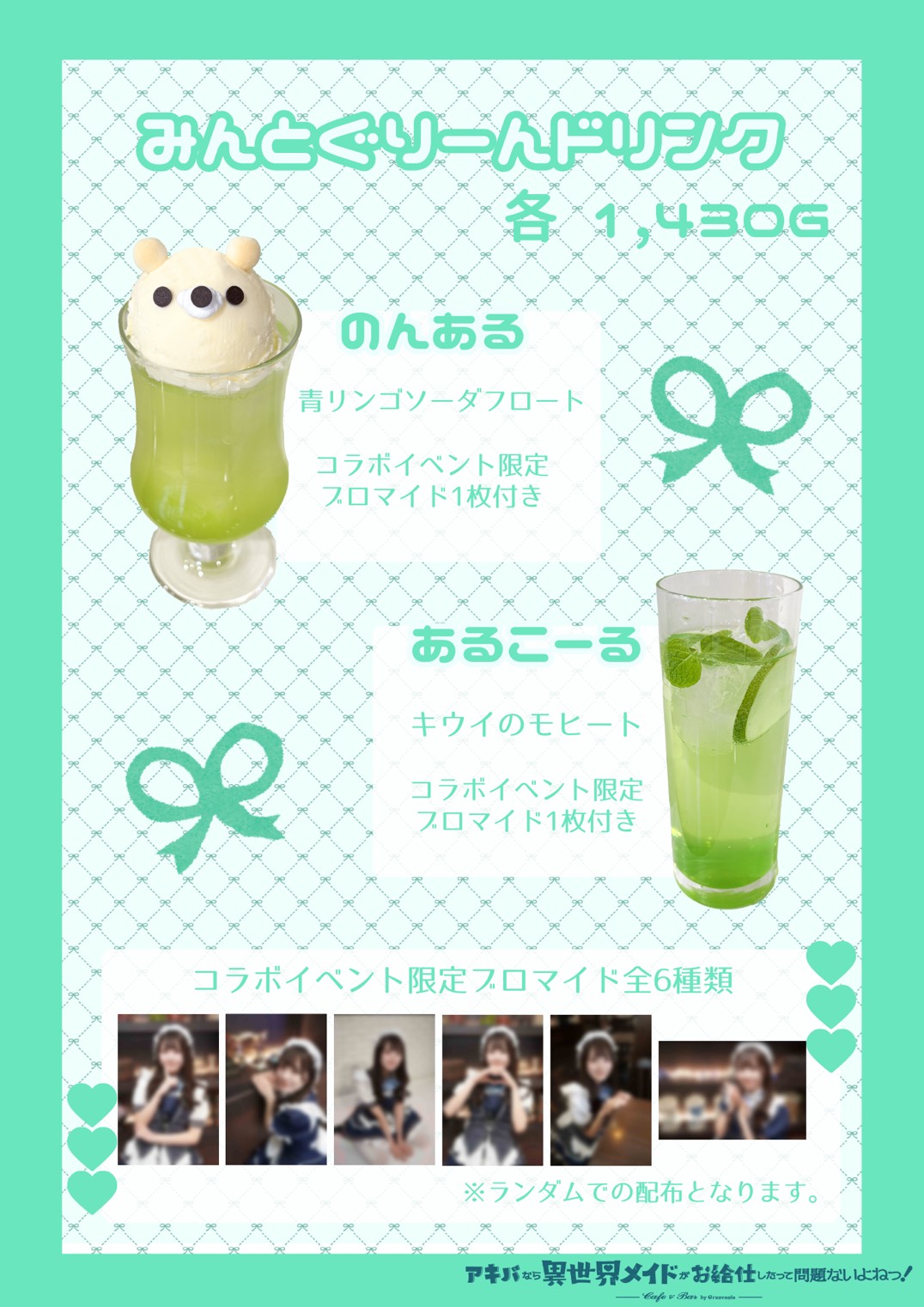 ・コラボドリンク 2種(アルコール1種、ノンアル1種)(ランダム限定ブロマイド1枚付) 1,430円